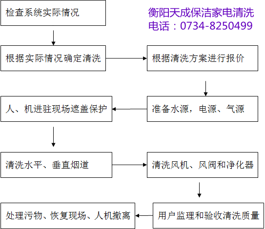 衡陽天成家電清洗公司可利用特殊設備進行清潔,不留死角,并可拍攝清潔前后的對比照片,打消客戶的疑慮和擔心,消除一切潛在的火災隱患。風機、風柜與油煙管道連接的方法一般有兩種情況:一種是用帆布相連的軟連接,而另一種是直接與油煙管道相連的硬連接。可提供更換風機、風柜連接帆布的服務。如果是油煙管道硬連接,我們將與風機、風柜相連的油煙管道進行徹底清潔。